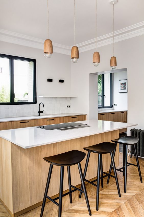 Une cuisine Blanche & Bois... Un intemporel !